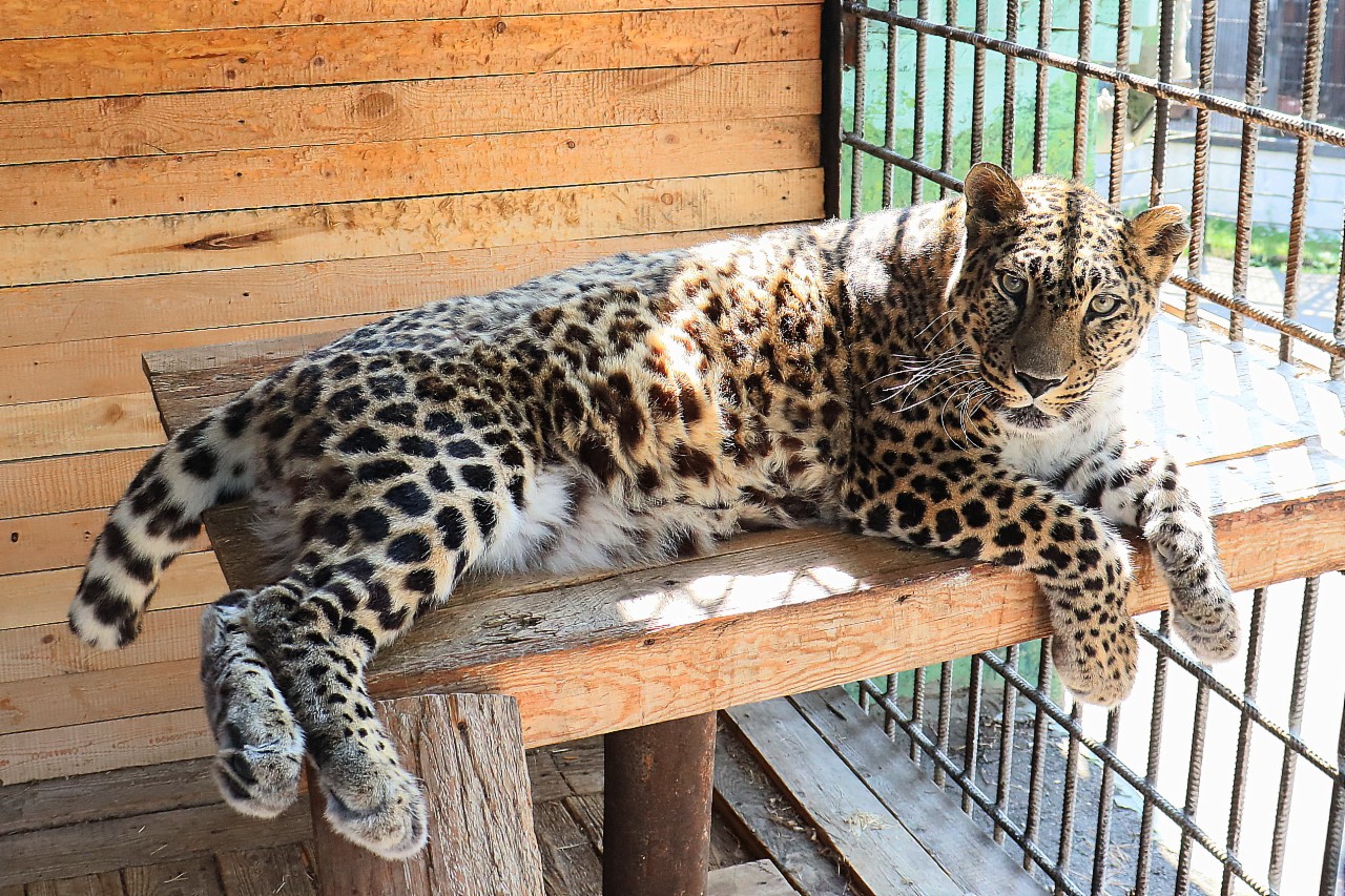 А кто здесь королева? Знакомьтесь, Лада, самка леопарда. Она вальяжно разлеглась в вольере, не обращая внимания на посетителей. Краснокнижной красавице из семейства кошачьих – 14 лет. Три года назад Лада тяжело заболела. Потребовалась серьезная операция, которую провели врачи ветеринарной станции Железногорска. Леопарду приходилось выдерживать до пяти капельниц. Выхаживать крупного хищника после операции – та еще история. Лада оказалась трудным пациентом, с характером. Сколько шприцев она из рук медперсонала выбивала, сколько палок для фиксации сломала – не сосчитать, но ветслужба оказалась на высоте. Ладу удалось спасти.