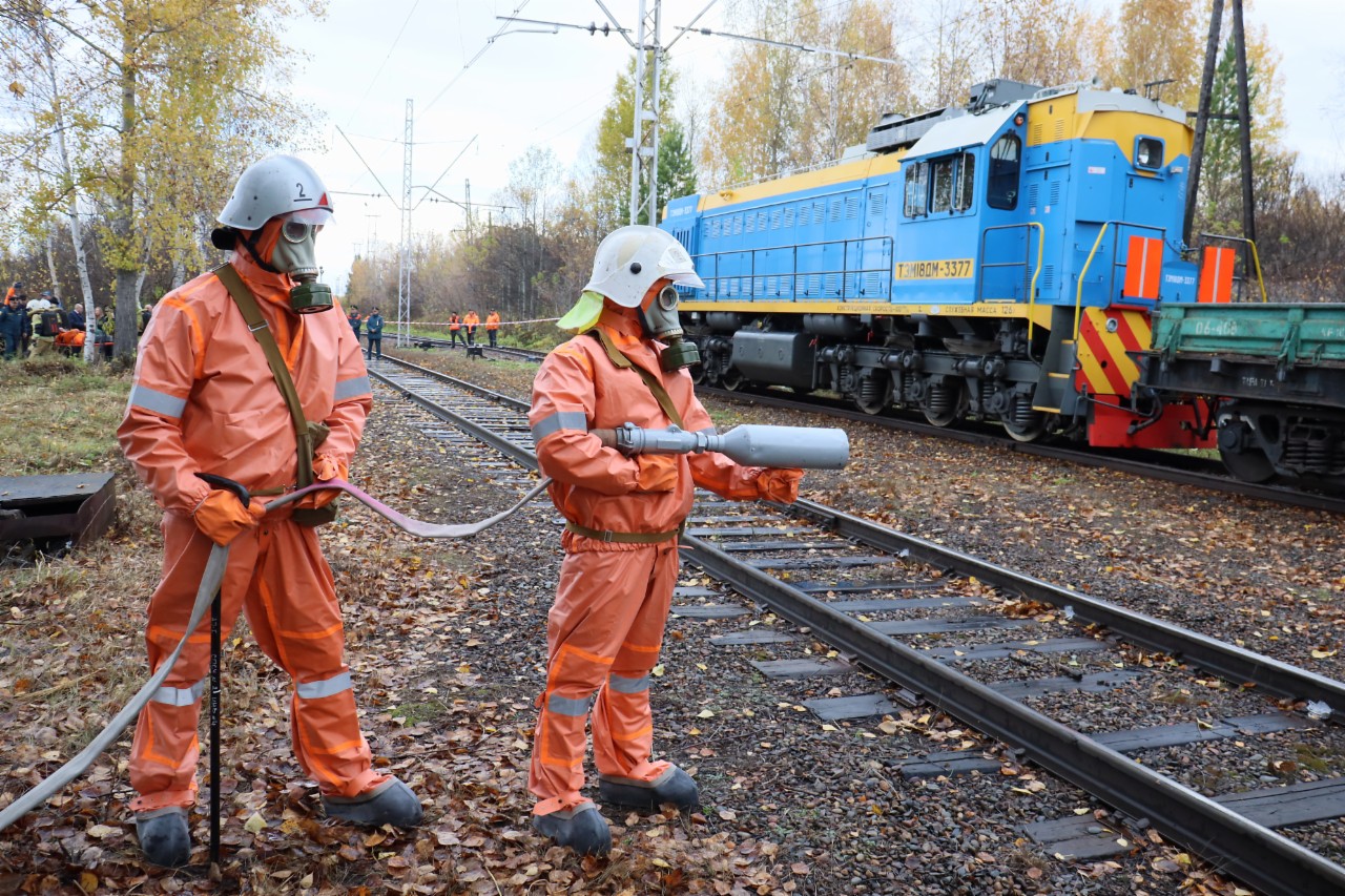 В ходе осмотра груза были выявлены повреждения и разгерметизация контейнера со специальным грузом, выброшенного из вагона. По указанию руководства ГХК приведены в готовность дополнительные аварийно-спасательные формирования, лаборатория по радиэкологическому мониторингу, пункты для выдачи необходимого оборудования и средств индивидуальной защиты, а также специализированная и инженерная техника.