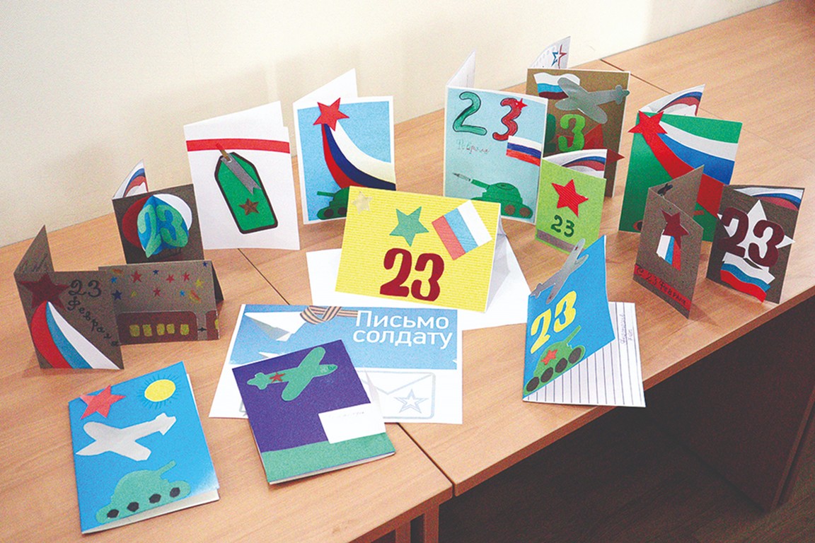 – На открытку я приклеила цифру двадцать три из бумаги и нарисовала флаг, – говорит Лиза. – В письме написала, чтобы воины охраняли Россию и детей и стихотворение ко Дню защитника Отечества. Пожелала крепкого здоровья, силы духа и, конечно же, победы.