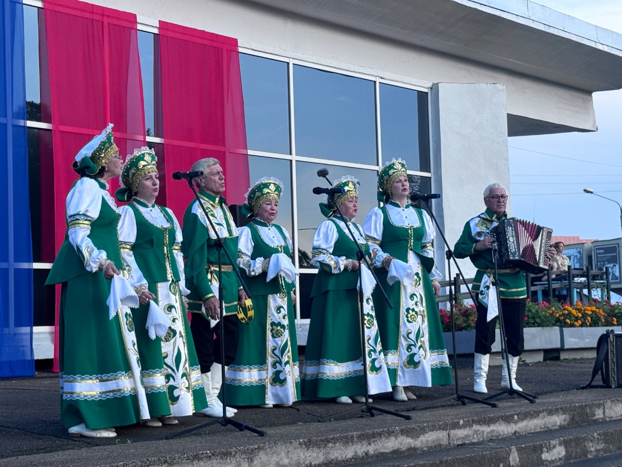 Особой популярностью пользовались интерактивные зоны: взрослые и дети с увлечением собирали спилс-карту России, рисовали триколор на камнях и осваивали игру на народных инструментах – гармони, балалайке, трещотках и даже рубеле. Особым подарком для гостей стало выступление творческих коллективов Дворца культуры.