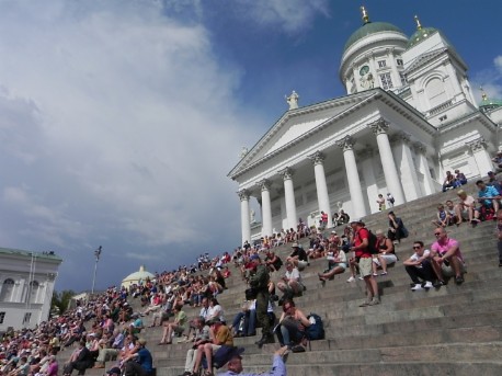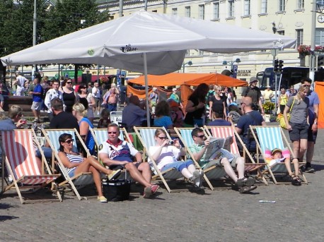 На газонах загорает народ. Множество причалов и бесконечные лодочки и яхточки. Городской базар на причале. Площади, церкви, театры, скверы и фонтаны. Огромные круизные лайнеры и исторические парусники. Запах моря, крики чаек и ласковый ветер. Так мы и не заметили, как обгорели на жарком солнце. В тот день в Хельсинки было +28.