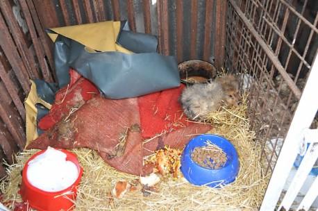 Вот туда мы с фотографом и отправились. Клетки нашли тут же. В них несколько упитанных хозяйских собак заливались дружным лаем. Еще пара псов - явно дворянских кровей - гуляла на воле. Напротив царила гробовая тишина. Несколько клеток под завязку забиты каким-то тряпьем, в одной - полупустой мешок замерзшего корма. А в самой последней – окоченевший труп с открытыми глазами. Грязный и исхудавший донельзя щенок. Видимо, его-то Галина и застала еще живым. Тут же – кастрюля со льдом, плошка сухого корма и горсть гавайской смеси вперемешку с хлебными корками.