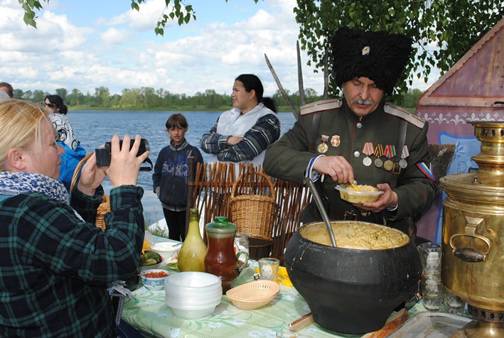 Казачинский район встретил журналистов песнями вокального коллектива и приветственными словами главы и атамана местного казачьего войска. Последний пригласил прессу к уже накрытому прямо на берегу столу, где щедро накладывал в пластиковые тарелки еще дымящийся кулеш и, заговорщицки подмигивая, предлагал к лоснящемуся на солнце слабосоленому сальцу домашней наливочки. Тактично отказавшись от горячительного, мол, на службе ни-ни, журналисты расселись по автобусам и потряслись на разухабистым дорогам.