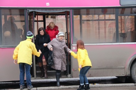 Ожидаемо подтвердилось, что в нашем городе слепому человеку очень сложно перемещаться самостоятельно – нет специальной тактильной плитки на тротуарах, светофоры не оборудованы звуковым сигналом, кондукторы в маршрутках не называют остановки, и даже если попросить персонально объявить ту же площадь Ленина, в ответ запросто можно услышать: «Я не знаю, где это». Но незрячие интуитивно знают практически весь город и неплохо ориентируются на слух. Они помнят привычные маршруты, чувствуют, когда и куда нужно повернуть, могут безошибочно назвать, что впереди – ворота, проезд или здание, знают, в каком районе находятся, всегда останавливаются перед проезжей частью, прислушиваются к движению машин и спокойно переходят улицу. Слепых в Железногорске не так уж много, и они нечасто выходят на улицу самостоятельно. Поэтому на прохожего с белой тростью, да еще и в сопровождении добровольцев в желтых куртках, горожане смотрели во все глаза.