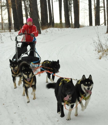 Готовую обученную упряжку из 7 собак привезли самолетом в начале декабря прошлого года. После не по-зимнему теплого Подмосковья, чукотки с восторгом возят железногорцев по сибирскому заснеженному лесу.