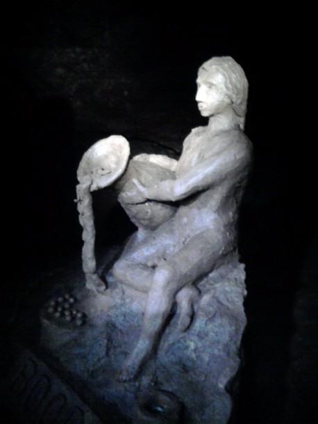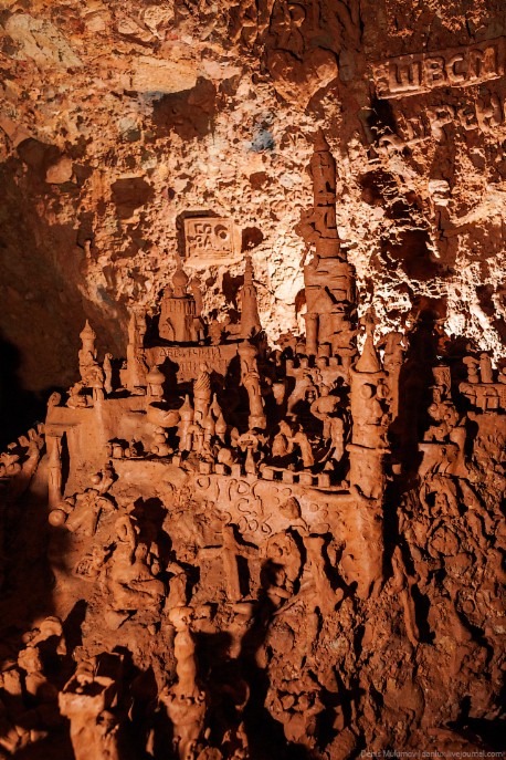 Отдельная тема - творчество посетителей Большой Орешной. Из пластичной песчанистой глины, которая в больших количествах есть под ногами, люди лепят целые города и замки! Есть и произведения искусства - практически античные статуи. Некоторые подходят к процессу с фантазией - тогда на местах стоянок появляются глиняные телевизоры и компьютеры. Кто-то мастерит в стенах чертиков - чтобы пугать особо впечатлительных, видимо. И правда, в свете фонарика такое чудо-юдо выглядит зловеще! Фигуры из глины уже стали местной достопримечательностью - все с ними фотографируются. Стоять такие произведения могут годами, и ничего им не сделается.