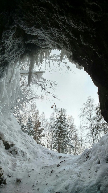 Вход в пещеру расположен на склоне горы в 400 метрах от дороги. Правда, прежде чем до него добраться, придется достаточно высоко подняться по крутой тропинке. Затем вы попадете в просторный грот, где можно стоять в полный рост, дальше последуют несколько небольших лабиринтов - эта часть пещеры была известна в начале прошлого века. Но в 1969 году двое красноярцев обнаружили ход, ведущий, как оказалось, на многие километры вглубь массива. Так вот, самое интересное начинается именно за этим лазом, который в народе называют «сквозняком». И чтобы продолжить путешествие, нужно проползти около 2,5 метров по узкому туннелю. Еще и не всякий туда протиснется!