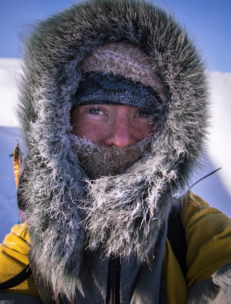 В таком режиме каждый день группа проходила в среднем 16 километров. Казалось бы - всего ничего! В городе такое расстояние можно осилить часа за 3-4 прогулочным шагом. Но одно дело идти по ровной дороге, и совсем другое - прокладывать путь по нехоженым диким местам через сугробы, горы, каньоны и замерзшие водопады. К тому же 16 км - это если по карте линии чертить. В реальности же получается куда больше из-за сложного рельефа и перепада высот. Да и холодно! Первую половину похода погода держалась относительно комфортная: ночью минус 30, а днем 12-15 градусов ниже нуля. Но в последний вечер зимы, 28 февраля, столбик походного термометра опустился до минус 41, и такая температура держалась все оставшиеся ночи путешествия. Днем теплело до 25 градусов, но хороший такой ветерок на высотах все равно доставлял спортсменам массу острых ощущений.