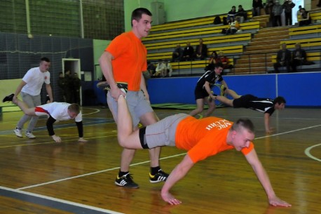 Студенты-спасатели заметно выделялись на фоне школьников и ростом, и шириной плеч, и скоростью, но в первой же эстафете с противогазом уступили более шустрым кадетам. В состязании «тачки» ребятам предстояло преодолеть дистанцию, держа товарища за ноги, пока тот перебирает руками в сторону финиша. В конце зала менялись местами, и «тачка» вставала с рук на ноги, а «погонщик» семенил обратно уже на руках. Самыми быстрыми и сильными оказались курсанты академии МЧС, кадеты пришли вторыми, «патриоты» - третьими, последними добрались лицеисты.