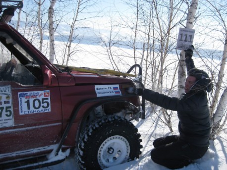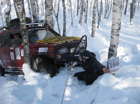 В одном из подъемов пришлось стильно долго рубиться и вот когда уже заползли....дернул меня черт открыть капот, посмотреть как там товарищ мотор поживает....открываю капот, а там открытое пламя в районе коллектора....быстренько закидали снегом.... Уже после финиша стали раздумывать, что загорелось, пришли к выводу, что загорелось масло, которое попало на подушку двигателя при заливке в АКПП. Впредь будем аккуратнее при смене масел в агрегатах.